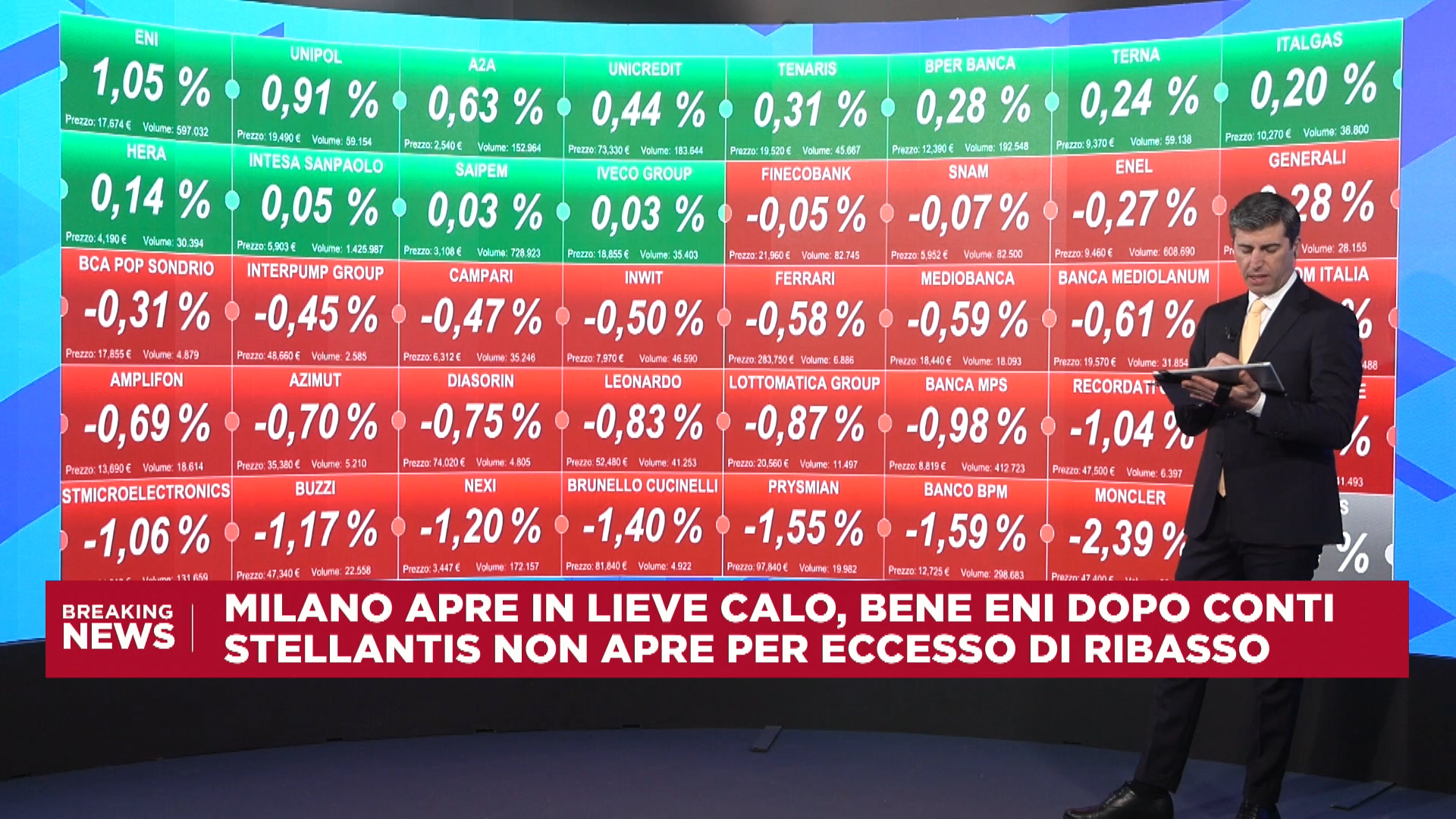 Piazza Affari in territorio negativo a meta’ seduta